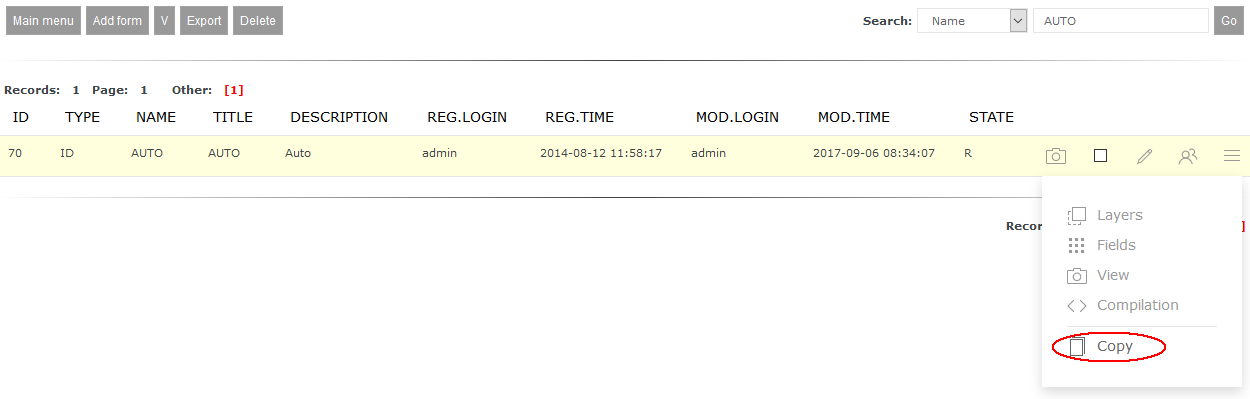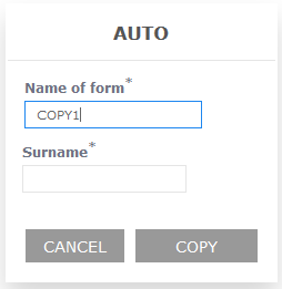 Copying formSometimes you want to create new form that is similar to existing one. Thanks to copying option you can significantly speed up the process. After select desired form (in option Resources->Form list) you need to select from menu option Copy: ![]() After that you will se a form with additional field Form name, where you need to enter new form name. Pressing Save key will lead to saving form with new name. ![]() Now you can edit newly created form to adjust it to your own needs - you can add new desktops (see how to do that here) and fields (see how to do that here). This page may have a more recent version on pmwiki.org: PmWiki:CopyFormsRej, and a talk page: PmWiki:CopyFormsRej-Talk. |