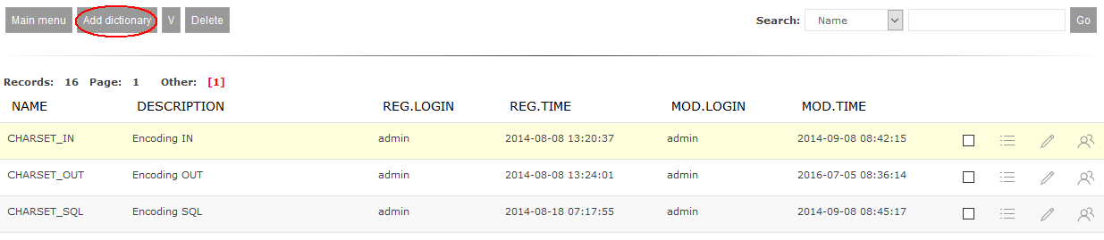 Registering new dictionaryTo register new dictionary you have to use Administration->Dictionaries option. After selecting it you will be shown below list: ![]() After clicking New dictionary button you will be shown form for new dictionary registration: ![]() Character *(star) next to Name field means that filling it is mandatory. This page may have a more recent version on pmwiki.org: PmWiki:SlwRej, and a talk page: PmWiki:SlwRej-Talk. |